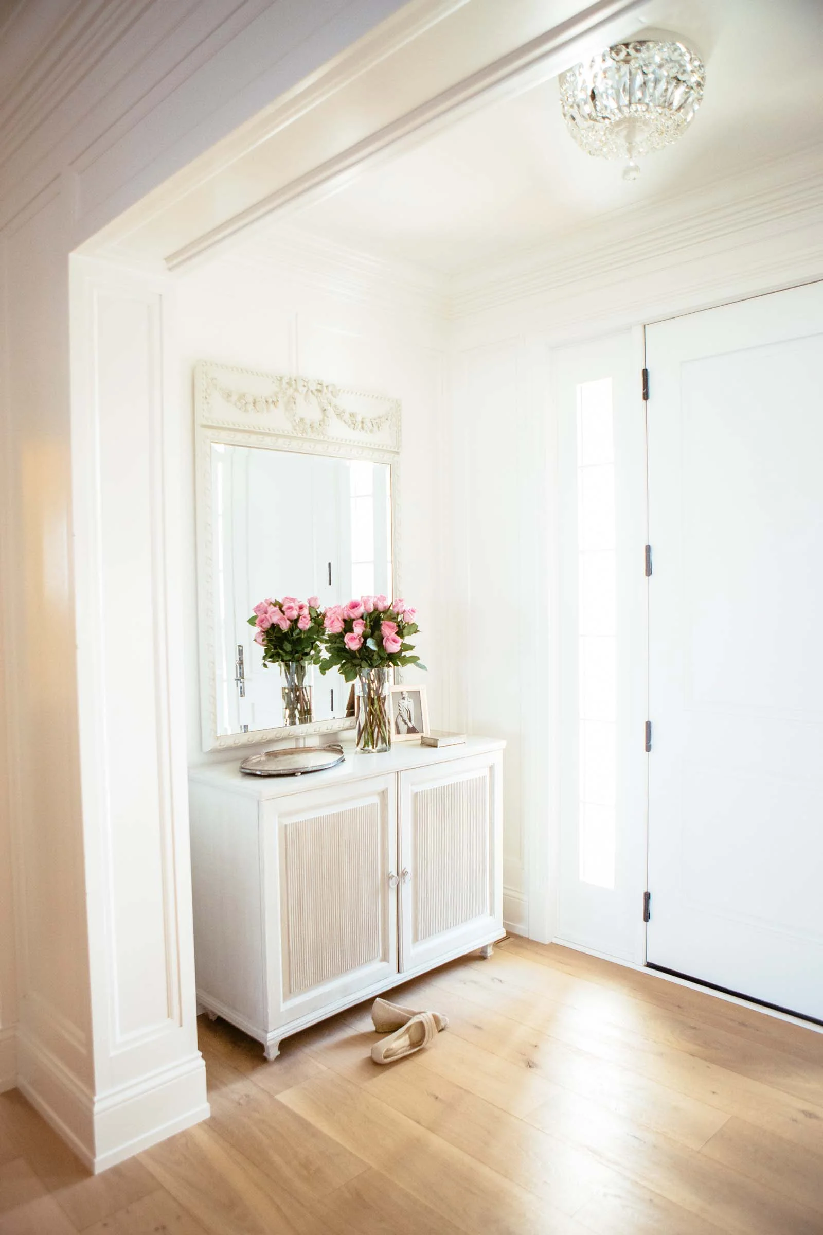 This Grand Beach home was designed to provide a busy family with a peaceful refuge. While practicality was of the essence, the homeowners still wanted to include some elements of the sophistication they enjoy in their city residence. To that end, the main level was designed to include a custom white kitchen with mercury glass-front cabinets that reflect the stunning view of Lake Michigan. While the serene living and dining rooms are perfect entertainment spaces for adults, the lower level focuses on poolside fun. A fully functioning kitchen and large game area with a ping-pong table lead to the pool and outdoor bar and grill via doors that completely pivot open. Each area of the home, from the master bathroom to the navy lacquered butlers pantry, feels like an upscale resort where the homeowners can happily escape their busy lives.